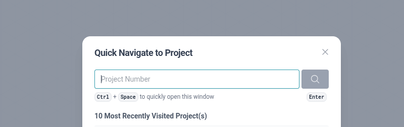 Clicking on this (or pressing the keyboard shortcut ctrl+space) opens a way to quickly enter a project number to navigate to or select from a list of recently visited projects