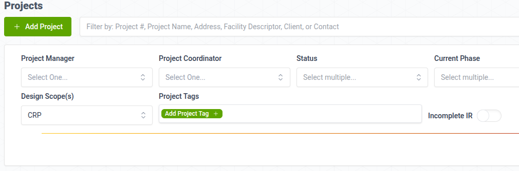 Project tag groups can be configured in System > Lists > Project Tag Groups