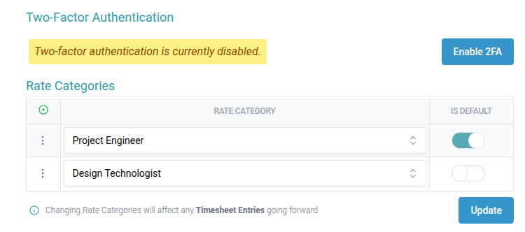 Clicking add Project Time or add Overhead Time now just let’s you select the Project/Overhead Category and add time in one step